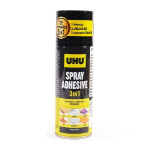 UHU ยู้ฮูกาวสเปรย์ 3in1 ขนาด 200 มล. เหมาะสำหรับติดหรือซ่อมแซมพื้นผิวขนาดใญ่ เนื้อกาวสีใส