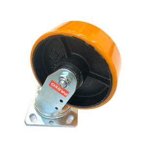 PAREO ล้อโพลียูรีเทนแกนเหล็กหล่อ ทนทานสารเคมี แป้นหมุน ขนาด 100MM/4″ รับน้ำหนักได้ 125 KG.