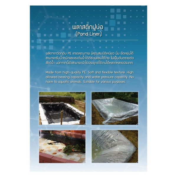 • ใช้สำหรับปูบ่อน้ำ ปูบ่อปลา คลุมโรงเรือน