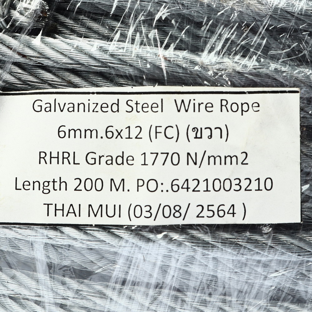 ลวดสลิงไส้เชือก 6X12 เส้นผ่านศูนย์กลาง Ø6MM. ความยาว 200M.