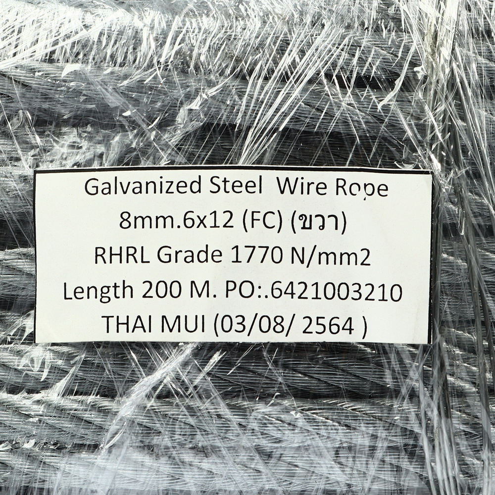 ลวดสลิงไส้เชือก 6X12 เส้นผ่านศูนย์กลาง Ø8MM. ความยาว 200M.