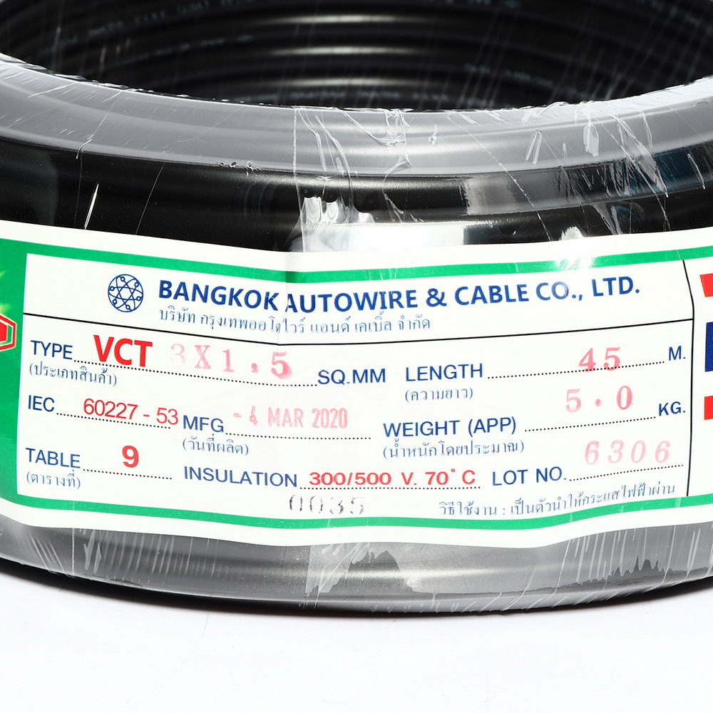 อะไหล่ สายไฟ VCT 3X1.5 SQMM (1.5HP) ยาว 45 เมตร