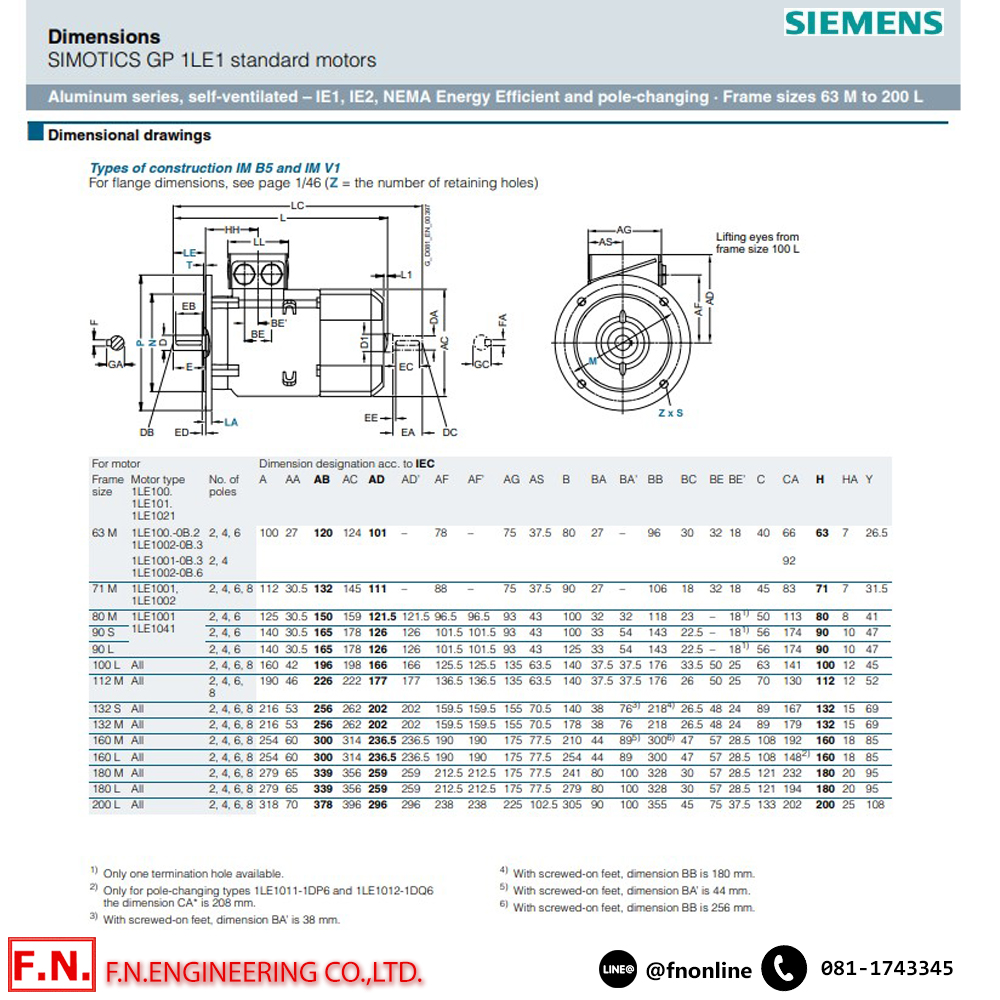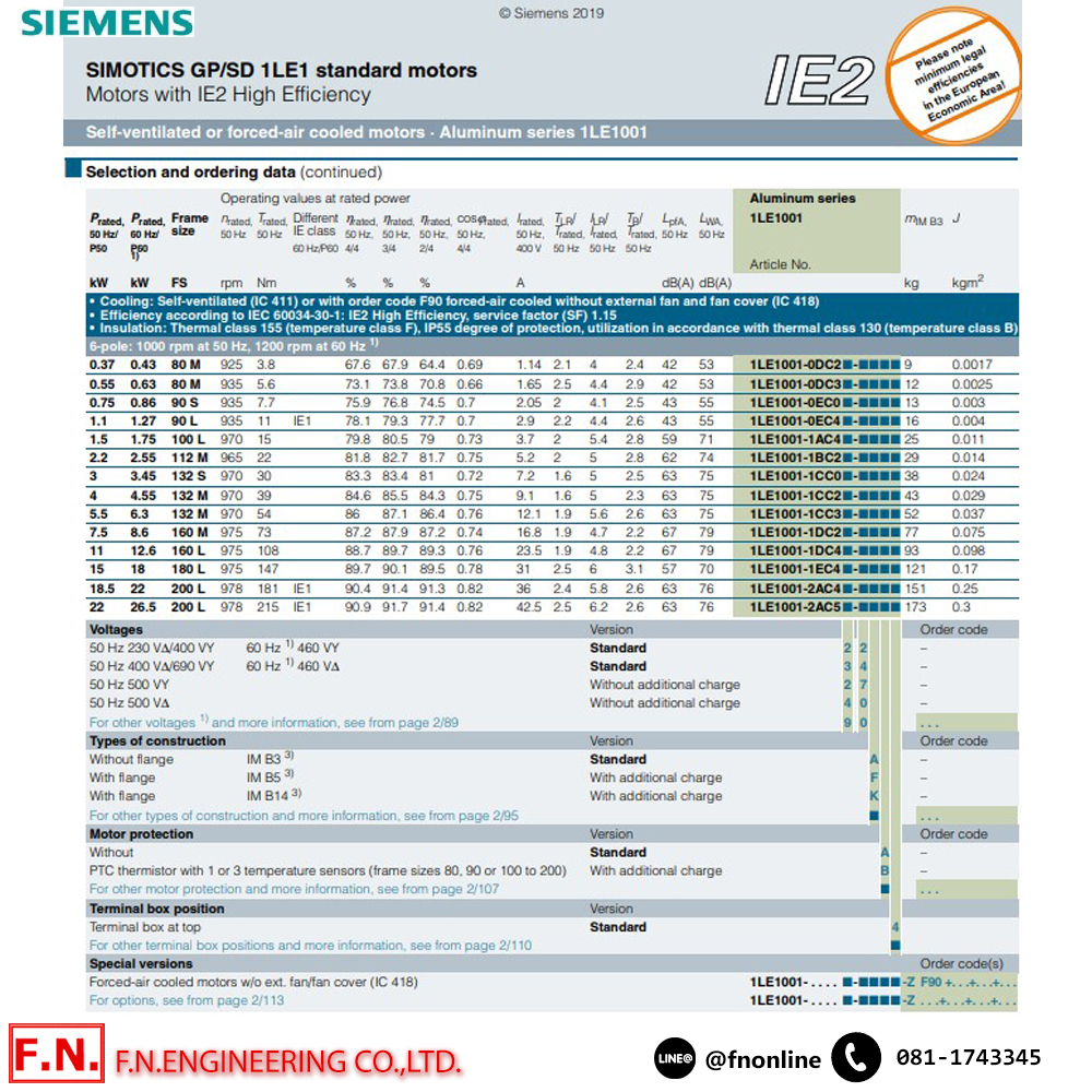• รุ่น 1LE1001 ระดับประสิทธิภาพสูง IE2 การทำงานกำลังบิดสูง และให้กำลังเต็มประสิทธิภาพ