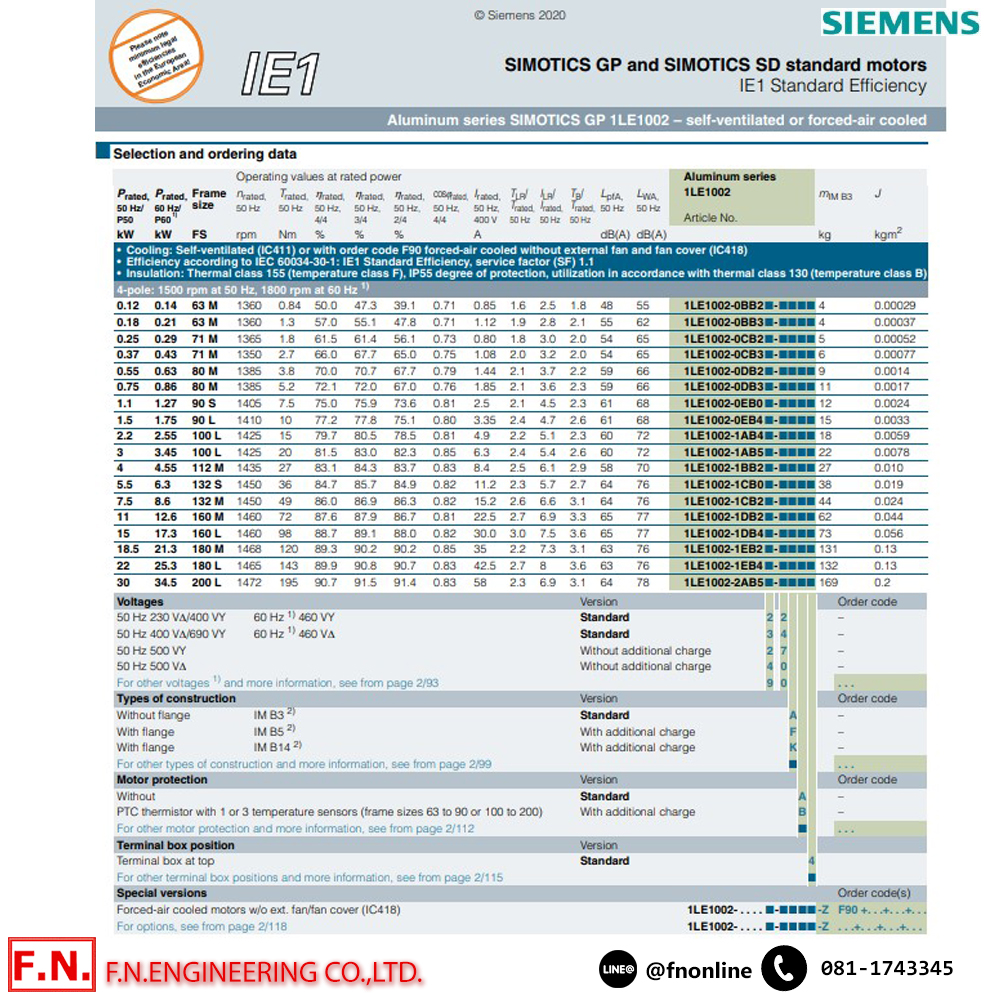 • รุ่น 1LE1002 การทำงานกำลังบิดสูง และให้กำลังเต็มประสิทธิภาพ