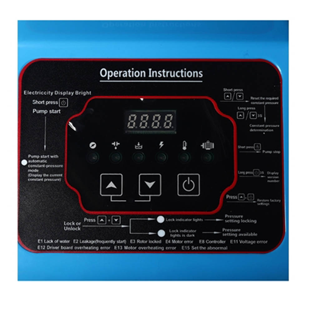 • โวลต่ำหรือสูงเกินกำหนด หรือมีปัญหาการทำงานต่างๆ จะมีระบบป้องกัน สั่งหยุดการทำงานของปั๊ม และแสดงสัญลักษณ์ที่กล่องควบคุม