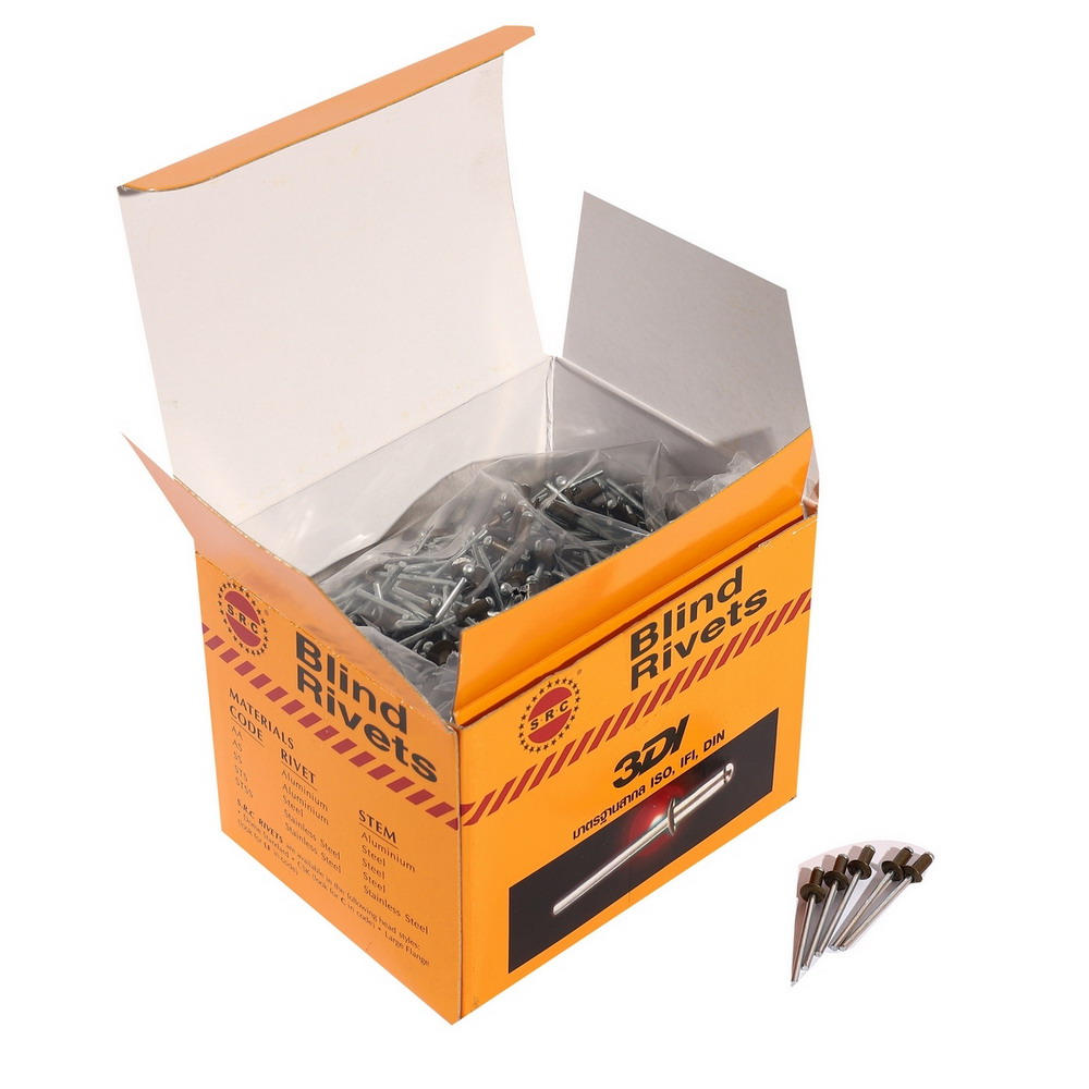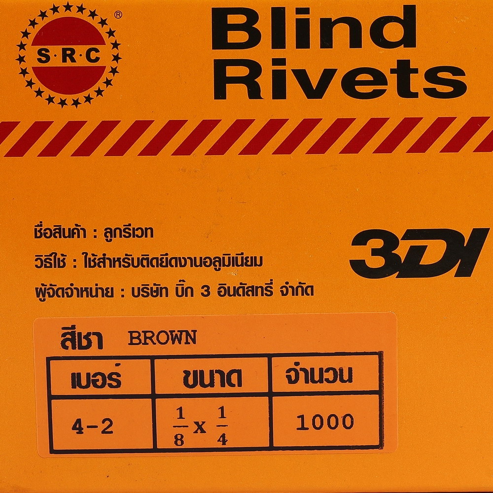 3DI ตะปูยิงรีเวท 3.2 X 7 มม. เบอร์ 4-2 สีชา ระยะยืด 2-4 มม. ผลิตจากอลูมิเนียมเกรดพิเศษ บรรจุ 1000 ตัว/กล่อง