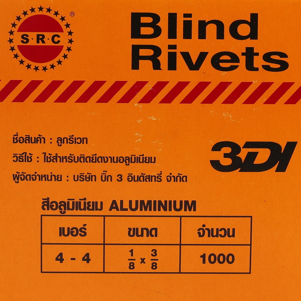 3DI ตะปูยิงรีเวท เบอร์ 4-4 ขนาด 3.2 มม. x 10มม. (1/8 นิ้ว x3/8 นิ้ว)ระยะยืด 5-7 มม. สีอลูมิเนียม (บรรจุ 1000 ตัว/กล่อง)