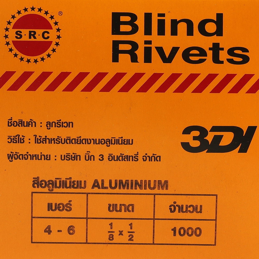 3DI ตะปูยิงรีเวท เบอร์ 4-6 ขนาด 3.2x 13มม.(1/8 นิ้ว x1/2 นิ้ว)ระยะยืด 8-10 มม.สีอลูมิเนียม (บรรจุ 1000 ตัว/กล่อง)