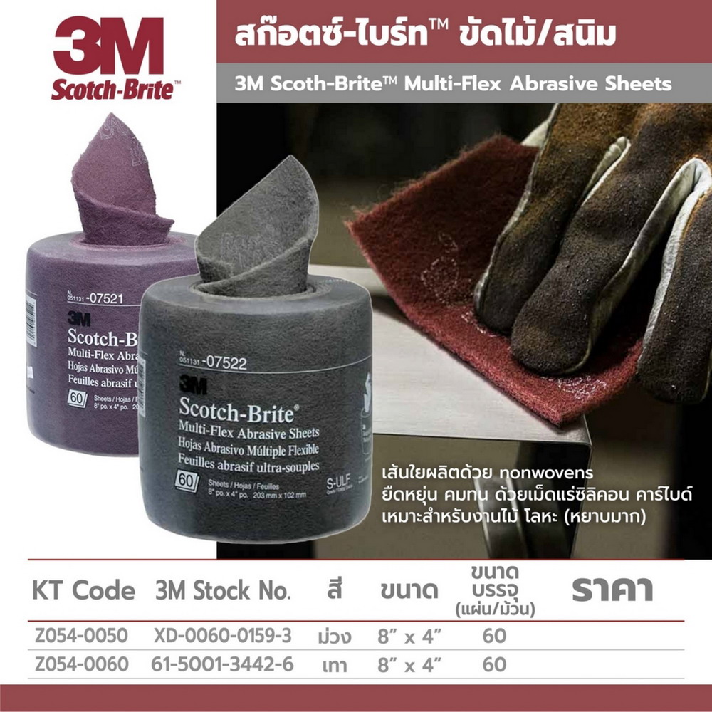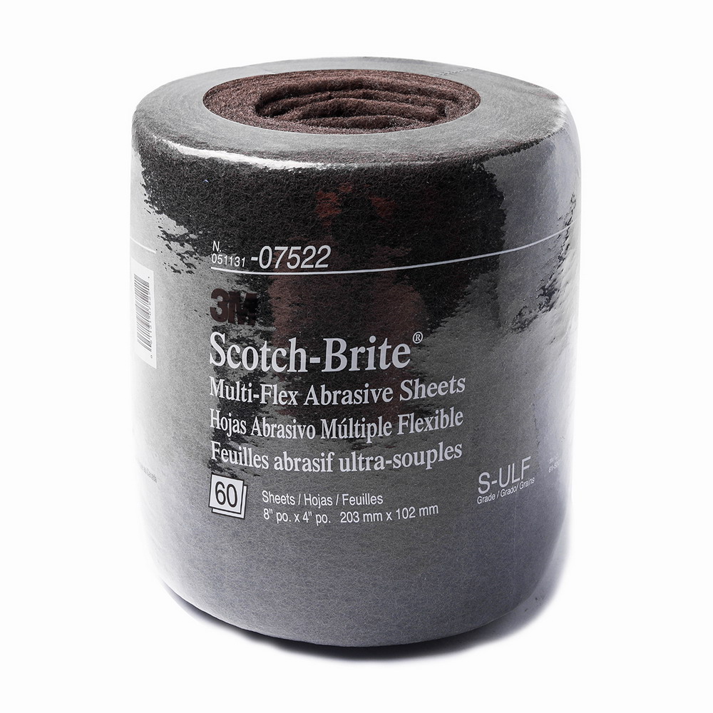 • 3M 07522 สก๊อตซ์-ไบร์ท ขัดไม้/สนิม สีเทา 8″x4″ 60 แผ่น/ม้วน