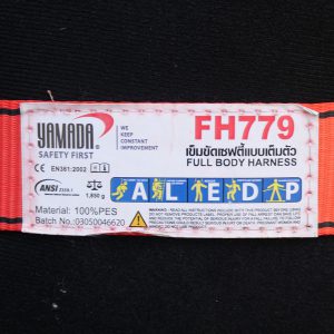 • ใช้ตะขอด้านที่มีอุปกรณ์ดูดซับแรงกระชากเกี่ยวที่ D-ring ด้านหลังของชุดเข็มขัดนิรภัย เพื่อยับยั้งการตกจากที่สูง เมื่อใช้ร่วมกับชุดเข็มขัดนิรภัย