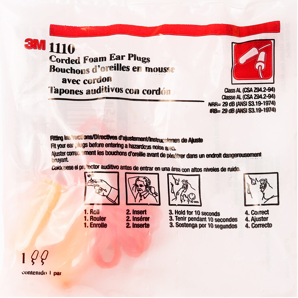 3M NO.1110 โฟมอุดหูลดเสียง มีสาย (1 กล่อง)