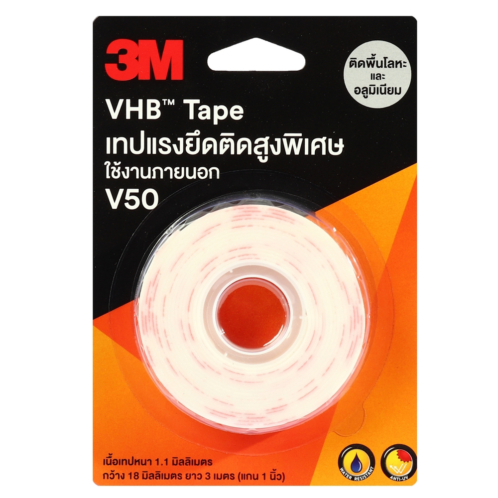 • “VHB™ Tape เทปแรงยึดติดสูงพิเศษ ใช้งานภายนอก V50 ขนาด 18 ม.ม. X 3 ม.