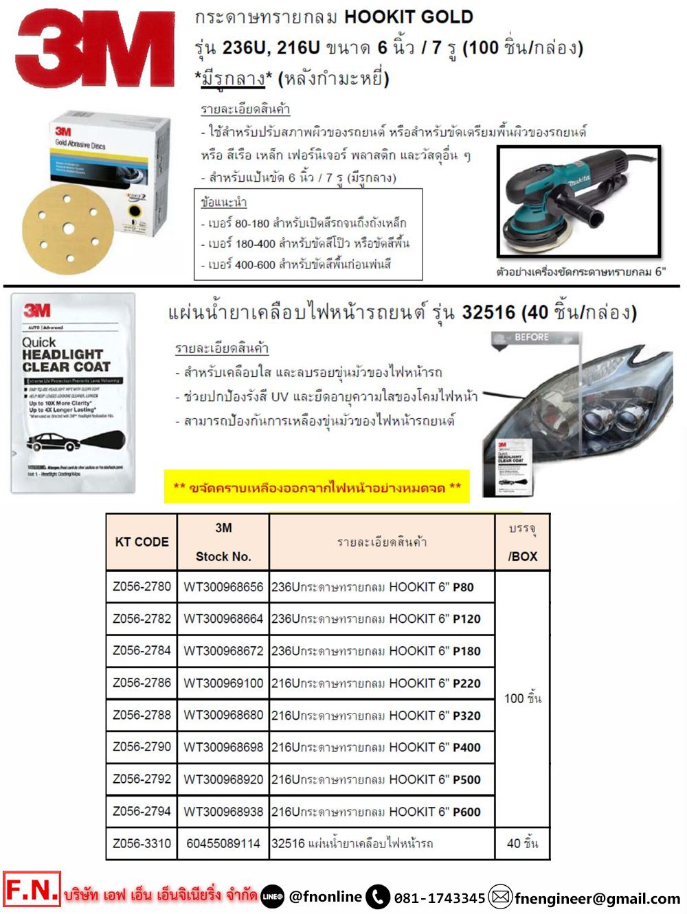 • 3M WT300968938 กระดาษทรายกลม Hookit Gold 6 นิ้ว P600 รุ่น 216U มีรูกลาง 100 ชิ้น/กล่อง