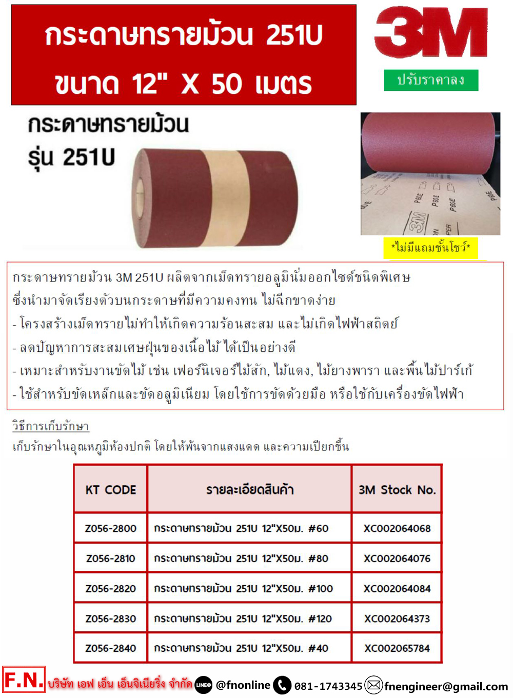 • 3M กระดาษทรายม้วน เบอร์ #100 รุ่น 251U ขนาด 12 นิ้ว X 50 เมตร