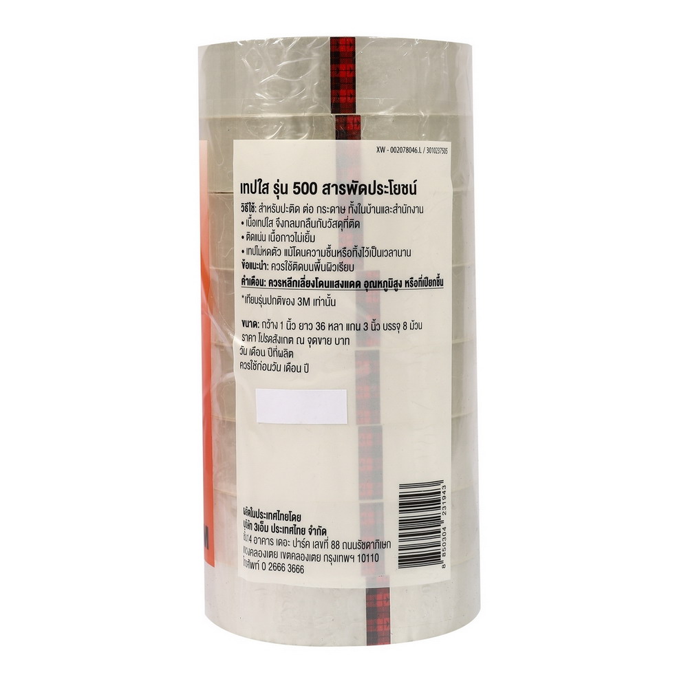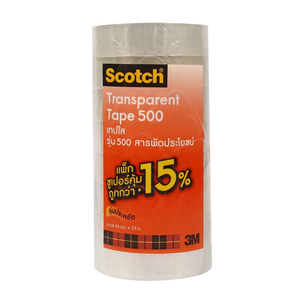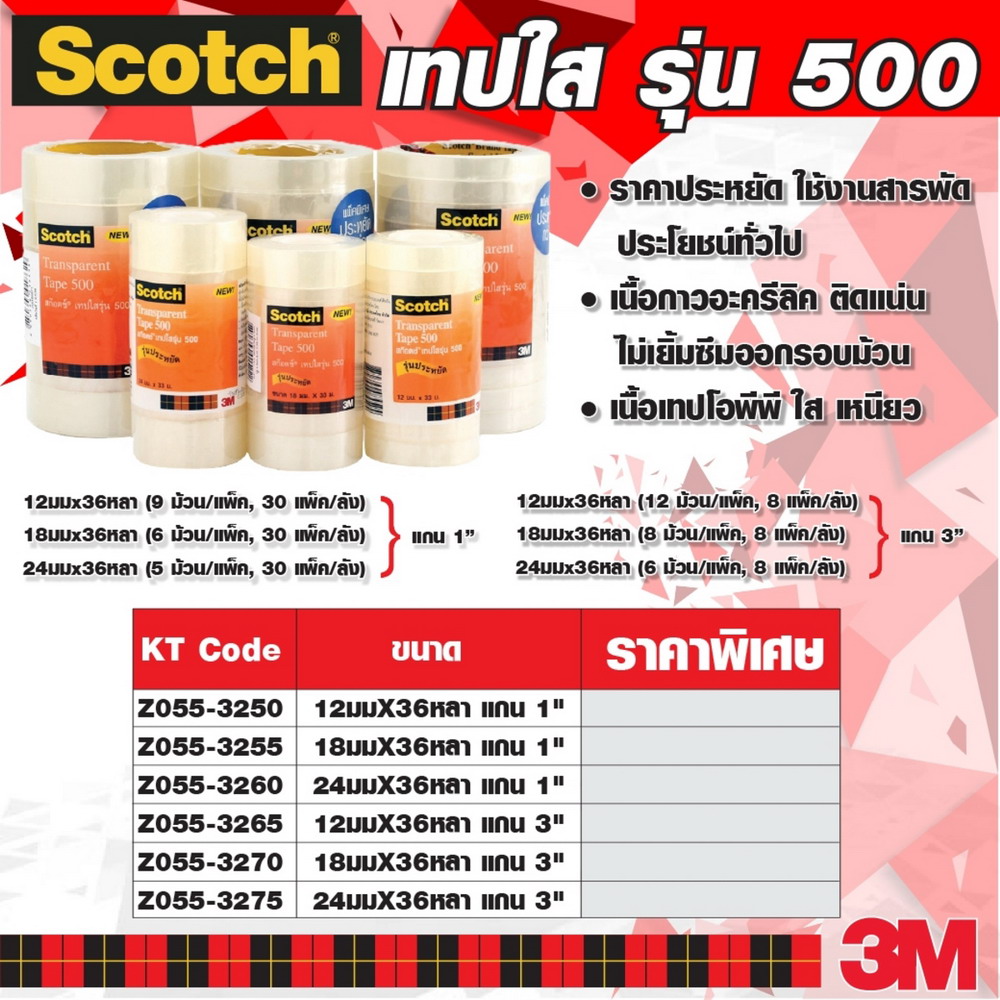 • เทปใส 3M รุ่น NO.500 ขนาด 24 มม. X 36 หลา (32.9 เมตร) แกน 3 นิ้ว (8 ม้วน/แพ็ค)