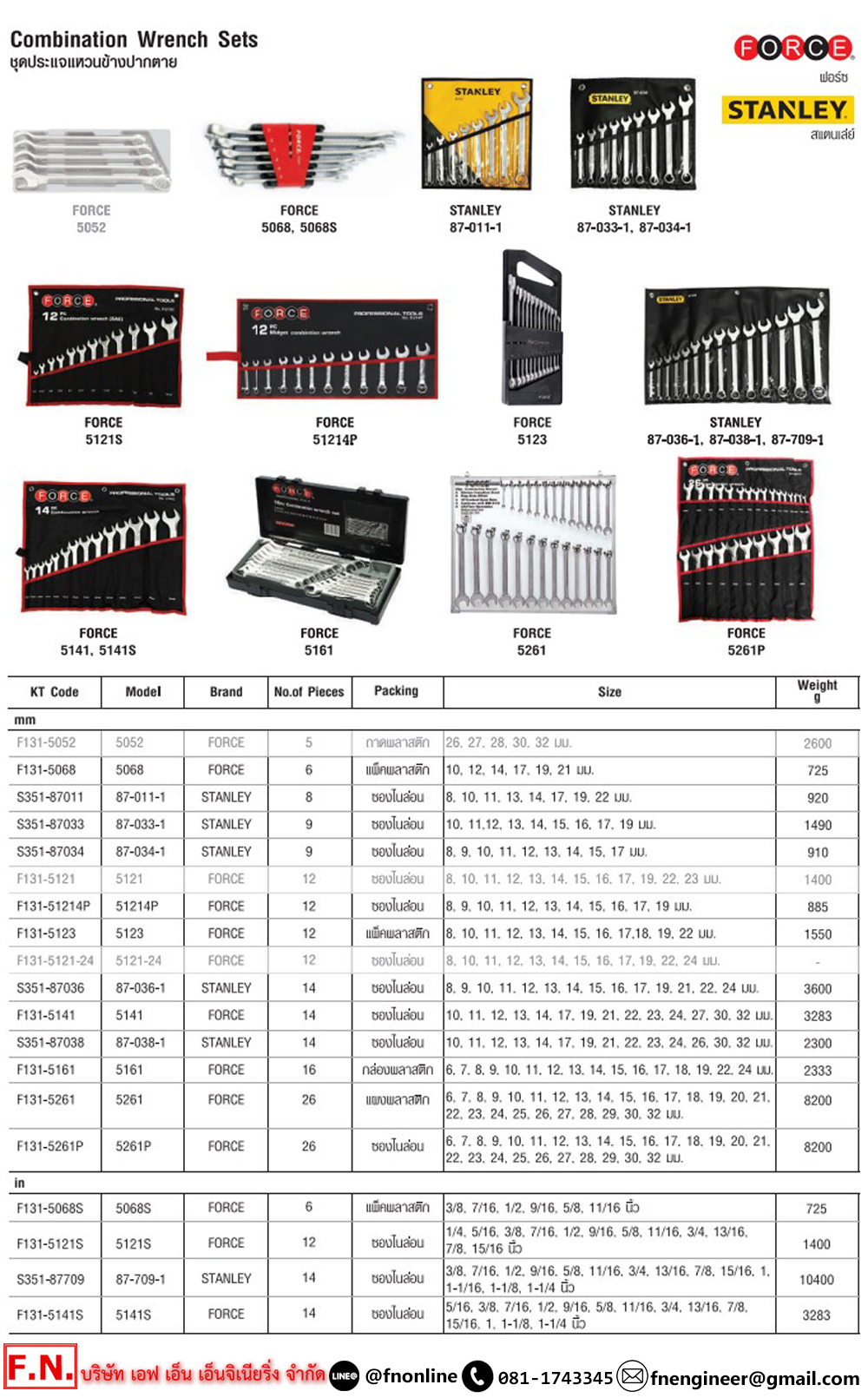 • 5161 ชุดประแจแหวนข้างปากตาย 16 ชิ้น 6-24 มม ยี่ห้อ FORCE