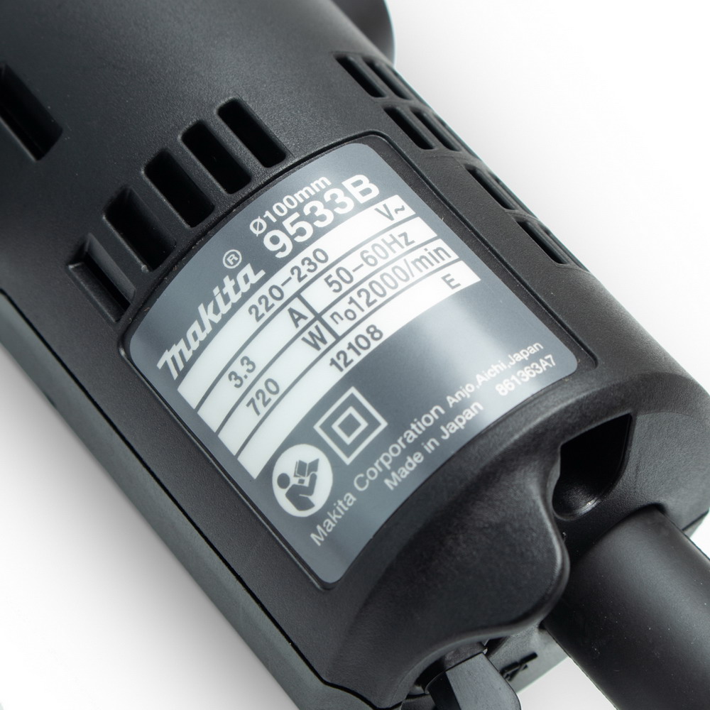 เครื่องเจียร์ไฟฟ้า MAKITA ขนาด 4 นิ้ว กำลังไฟ 720 วัตต์ รุ่น 9533B ความเร็วรอบตัวเปล่า 12,000 รอบ/นาที รอบเร็ว มีฉนวนสองชั้น