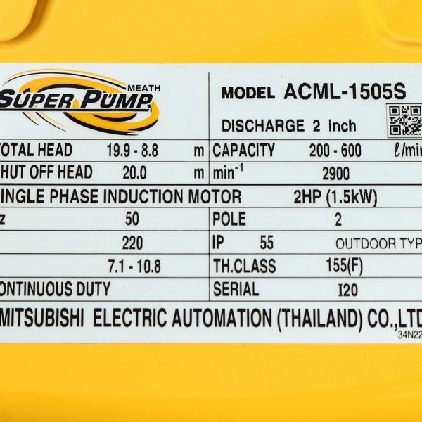 • ปั๊มน้ำหอยโข่ง ชนิดแรงดันสูงปานกลาง มิตซูบิชิ (MITSUBISHI) รุ่น ACML-1505S