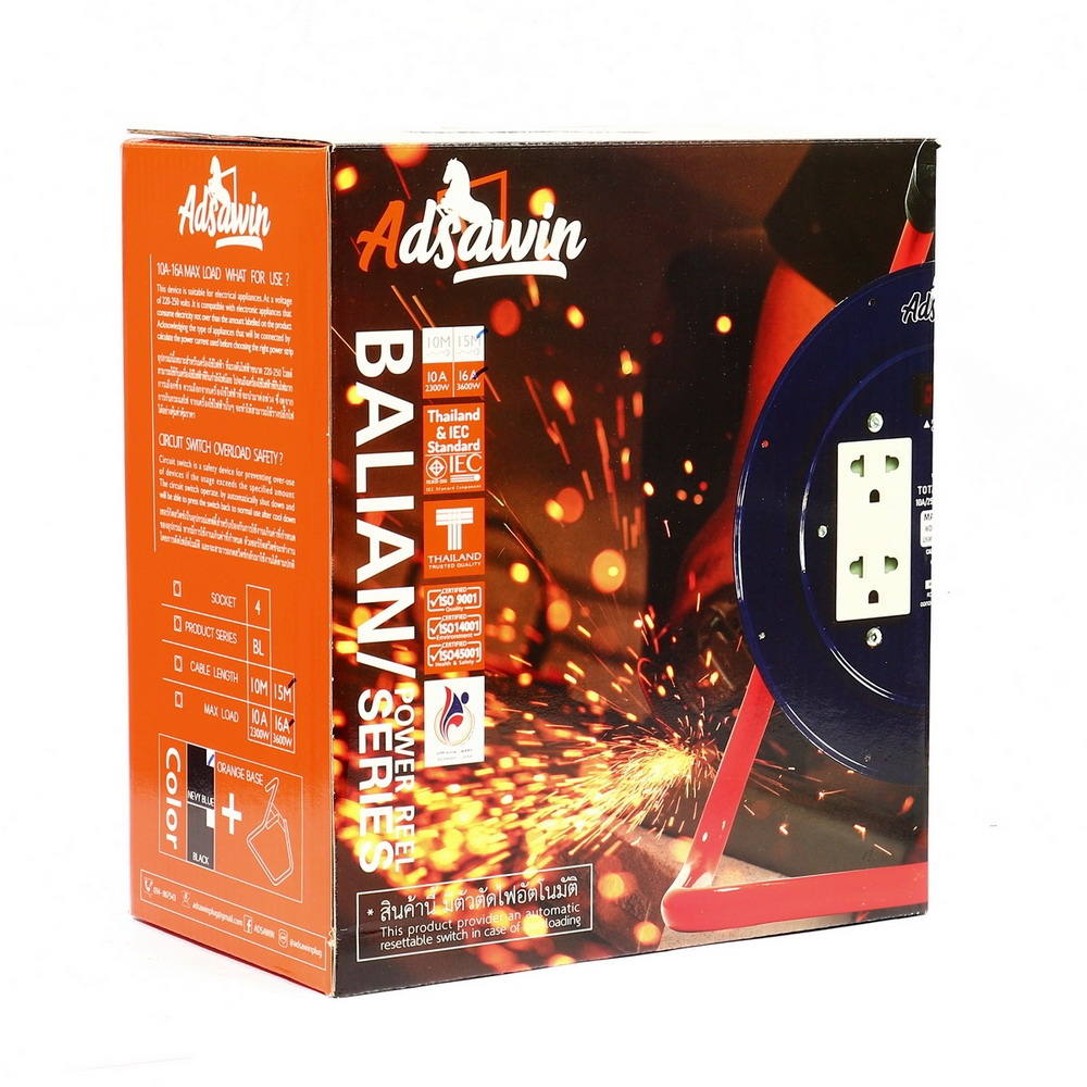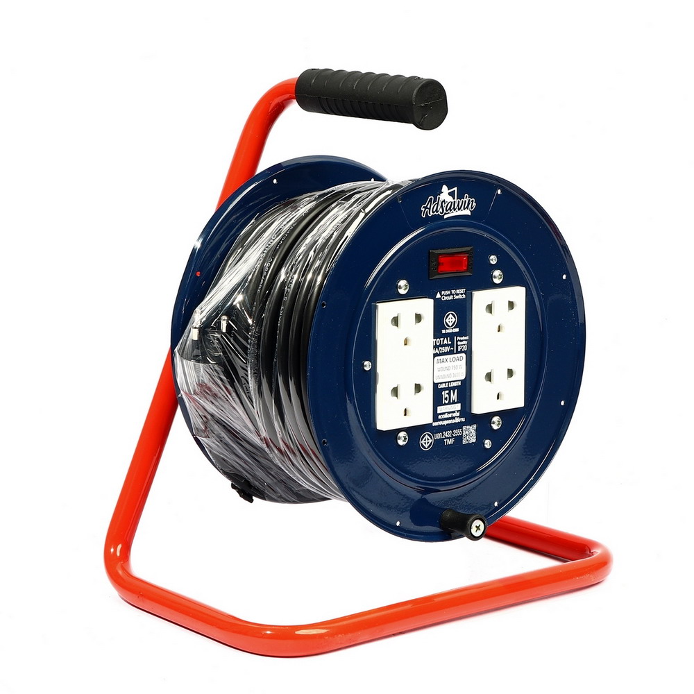 ADSAWIN BL315-15M ล้อเก็บสายไฟ 4 ช่อง 1 สวิตซ์ สายไฟ 15 เมตร 16A. 3600W. สายไฟ VCT 3×1.5 sq.mm