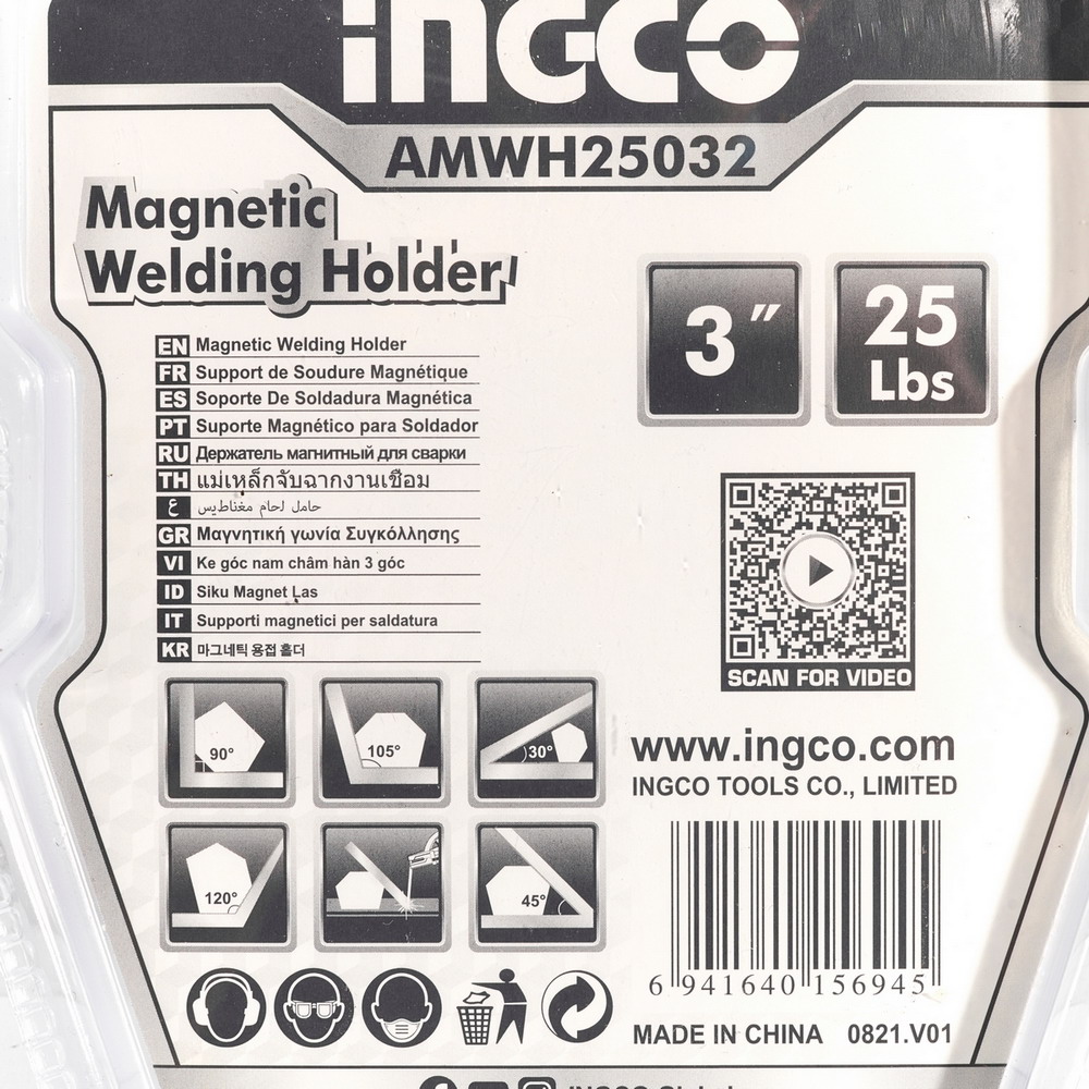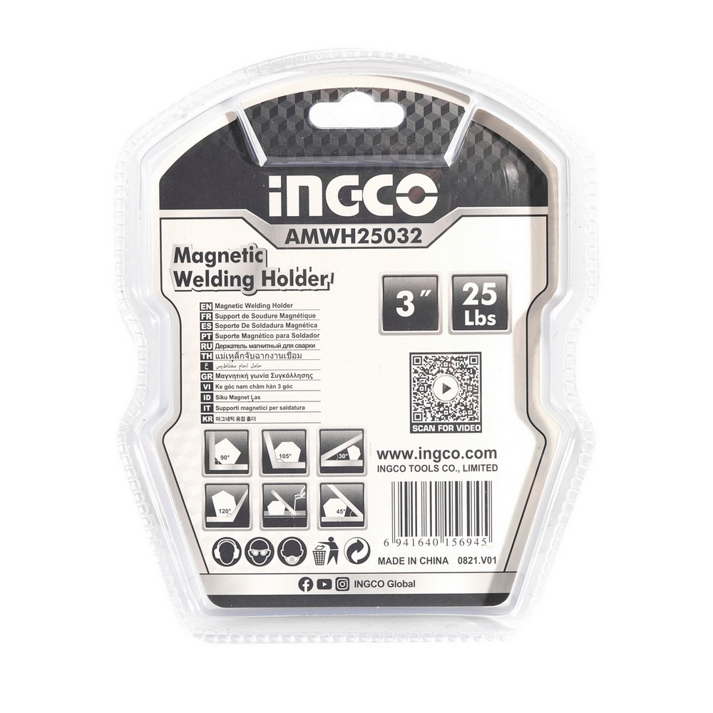 INGCO แม่เหล็กจับฉากหกเหลี่ยม ขนาด 3 นิ้ว รุ่น AMWH25032 รับน้ำหนักได้ 25 ปอนด์ (11 กิโลกรัม)