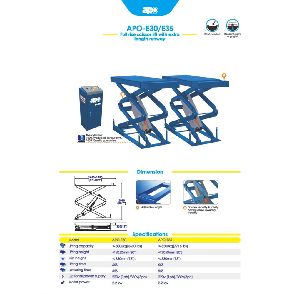APO-E30 ลิฟท์กรรไกรแบบฝังพื้น 3 TON มอเตอร์ 2.2 KW. ยกรถสูงสุด 2050MM