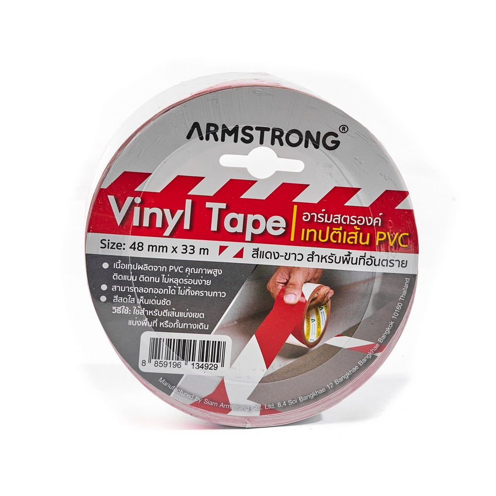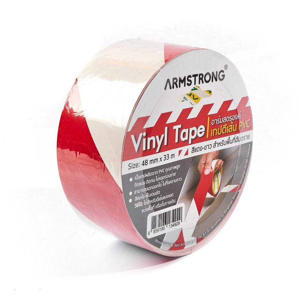 ARMSTRONG เทปตีเส้นพื้น เทปไวนิล สีแดง-ขาว ขนาด 48 มม.X33 ม. สำหรับพื้นที่อันตราย เนื้อเทปผลิตจาก PVC ติดแน่น ไม่หลุดร่อนง่าย ลอกออกได้ โดยไม่ทิ้งคราบกาว ( 6 ชิ้น)