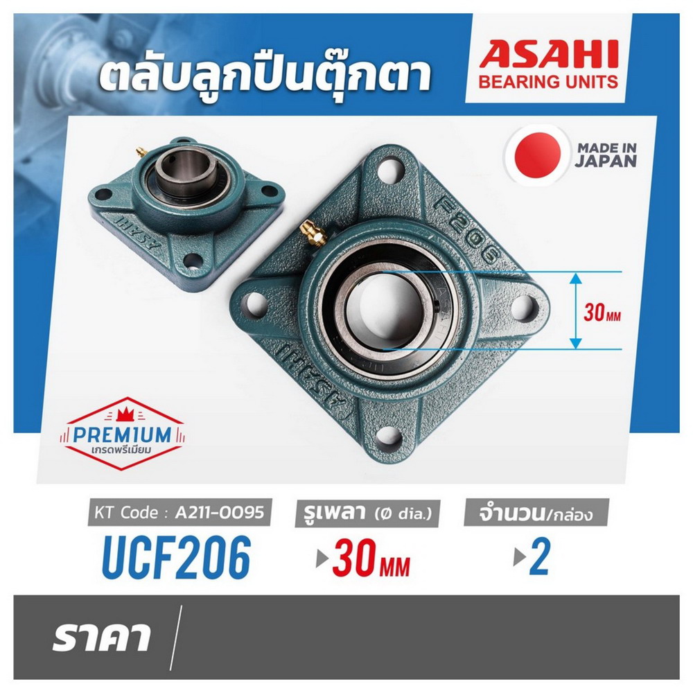 ASAHI UCF206 ตลับลูกปืนตุ๊กตา ทรงสี่เหลื่ยม รูเพลา 30MM. (2PCS/SET)