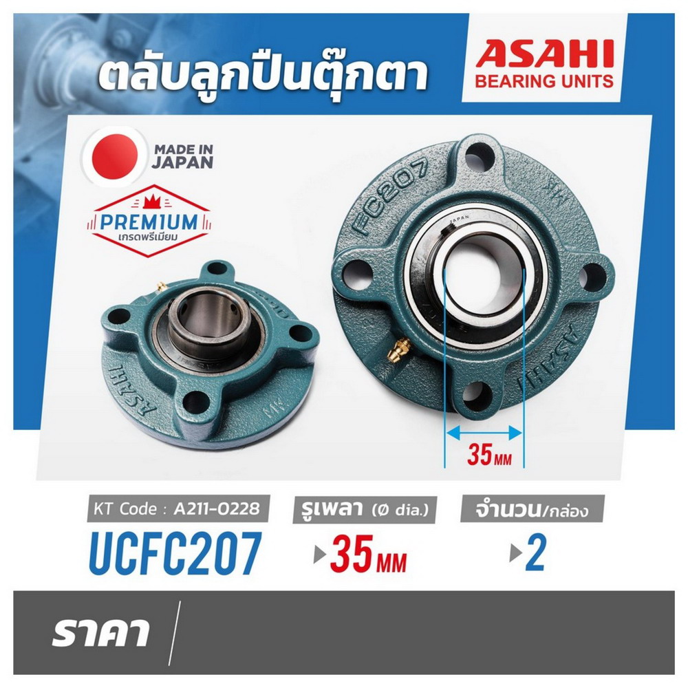 ASAHI UCFC207 ตลับลูกปืนตุ๊กตา ทรงตัว O หมอนบล็อกแบริ่ง รูเพลา 35MM. (2PCS/SET)