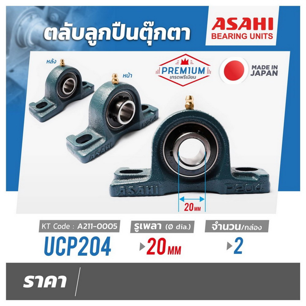 ตลับลูกปืนตุ๊กตา อาซาฮี (ASAHI) หมอนบล็อกแบริ่ง รุ่น UCP204 รูเพลา 20 มิลลิเมตร (2PCS/SET)