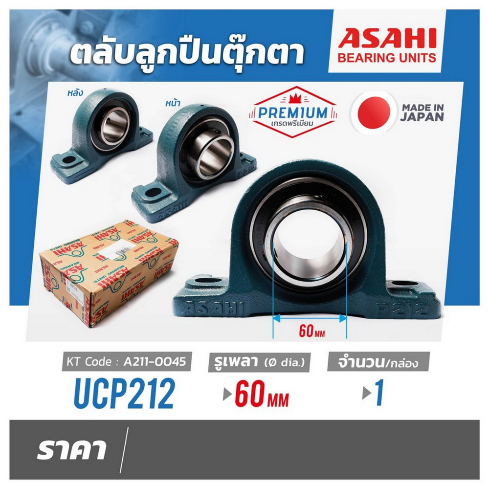 ASAHI UCP212 ตลับลูกปืนตุ๊กตา หมอนบล็อกแบริ่ง รูเพลา 60 MM.
