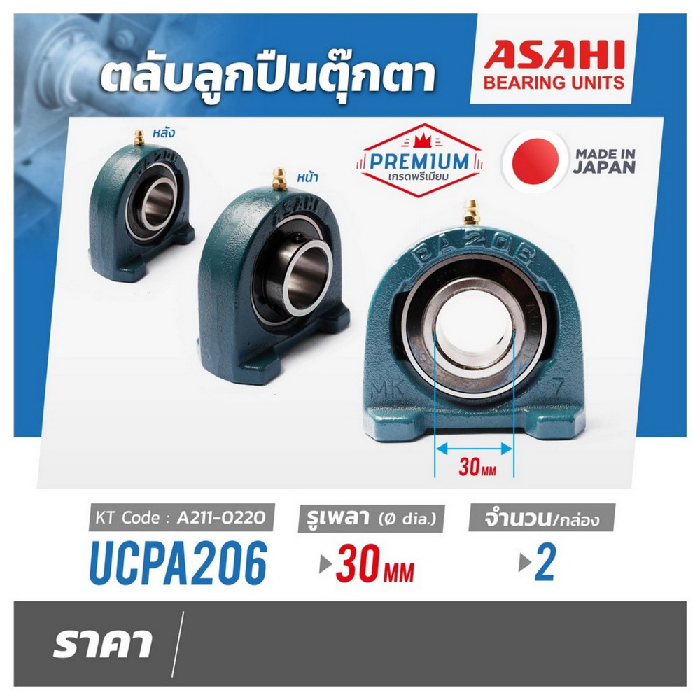 ตลับลูกปืนตุ๊กตา อาซาฮี (ASAHI) ทรงตัว U คว่ำ หมอนบล็อกแบริ่ง รุ่น UCPA206 รูเพลา 30 มิลลิเมตร