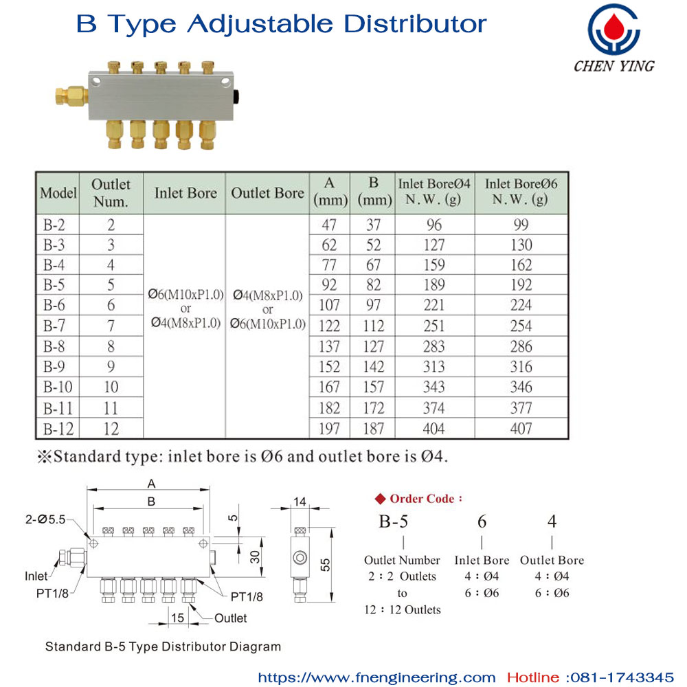 B-6 ข้อต่อแยกน้ำมัน CHEN YING 6 x 4 mm 6 ทาง