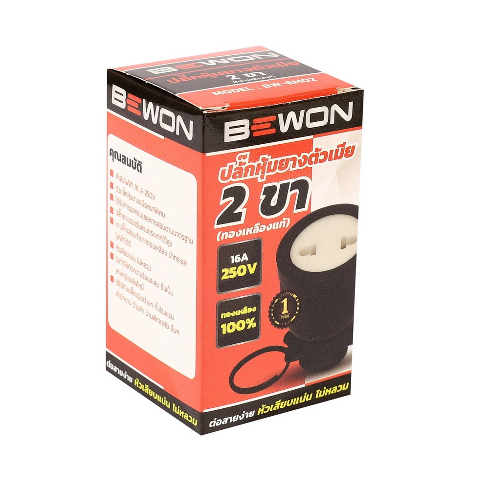 Be the first to review “BEWON BW-EM02 ปลั๊กหุ้มยางตัวเมีย พาวเวอร์ เสียบ 2 ขา 16A 250V (20 ชิ้น)”