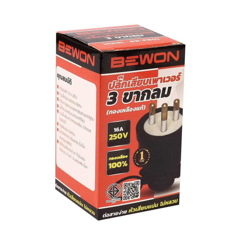 • ปลั๊กเสียบทำจากทองเหลืองแท้ เสียบแน่น ไม่หลวม นำกระแสไฟฟ้าได้ดี
