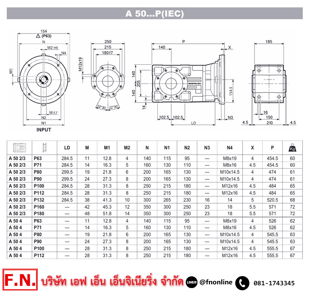 BONFIGLIOLI A-50-2-UH50-16.6-P112-B3 หัวเกียร์ประสิทธิภาพสูง อัตราทด 1:16.6