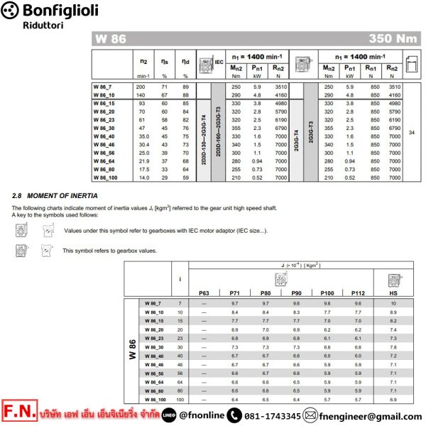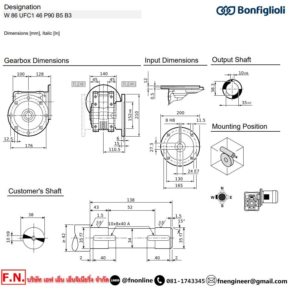 • BONFIGLIOLI W86 UFC146P90 B5 B3 หัวเกียร์ทดรอบ อัตราทด 1:46
