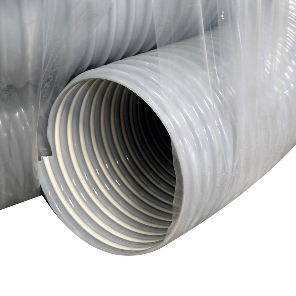 • เสริมเส้นเกลียวชั้นกลางด้วยเส้นพีวีซีชนิดแข็ง ประกบด้านนอกและด้านในด้วยพีวีซีชนิดนิ่มเพื่อให้ทนต่อแรงดันทั้งภายนอกและภายใน