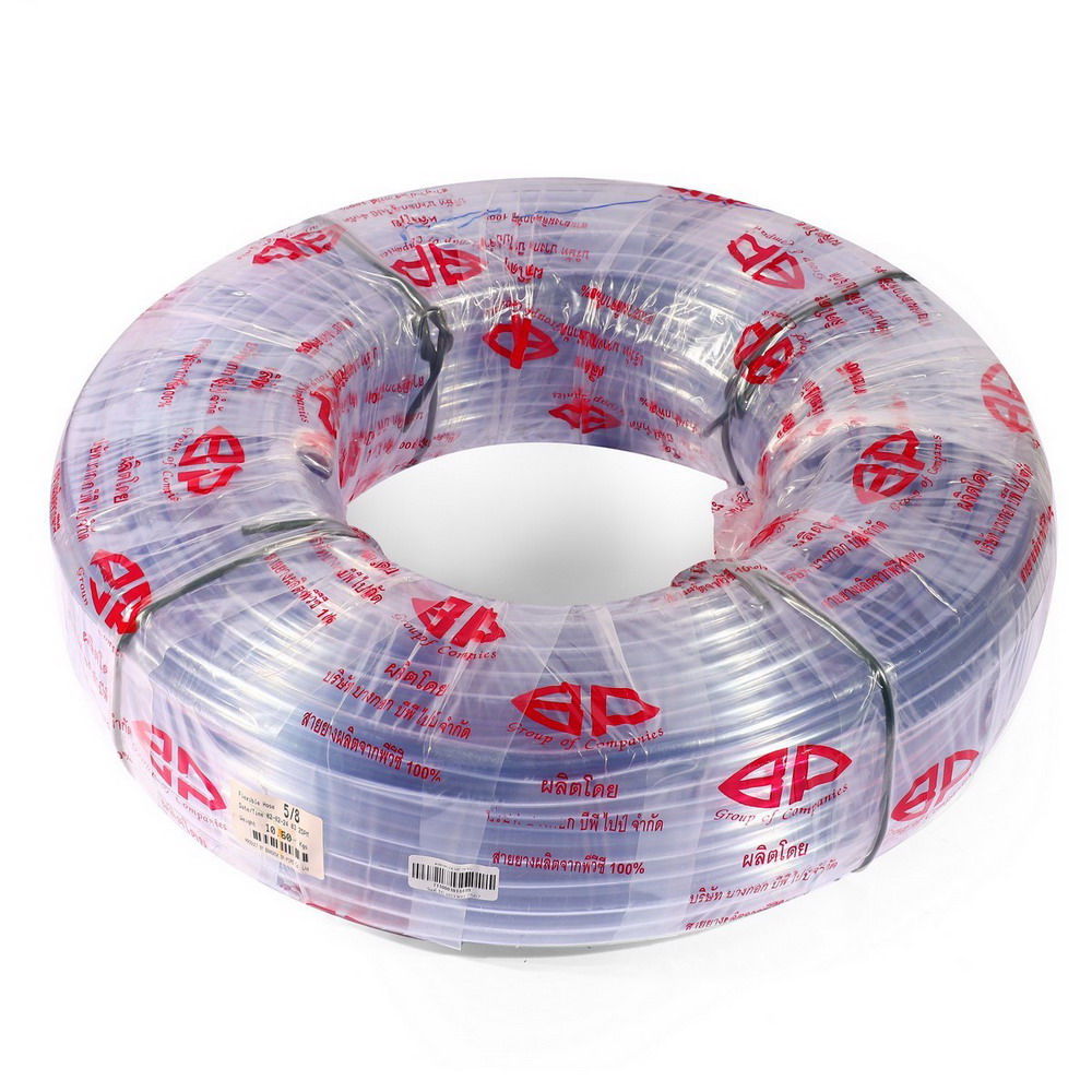 BP สายยางม้วนใส 5/8 นิ้ว ยาว 100M. หนัก 10KG. ใช้สำหรับงานรดน้ำต้นไม้ และงานทำความสะอาดอเนกประสงค์ทั่วไป