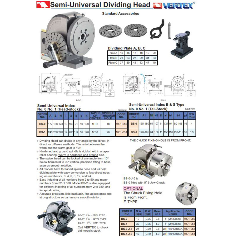 | ► Easy indexing of al numbers from 2 to 50 and many numbers from 52 of 380. Model BS-2 is also equipped for different indexing for all numbers from 2 to 380, and for spiral cutting. |