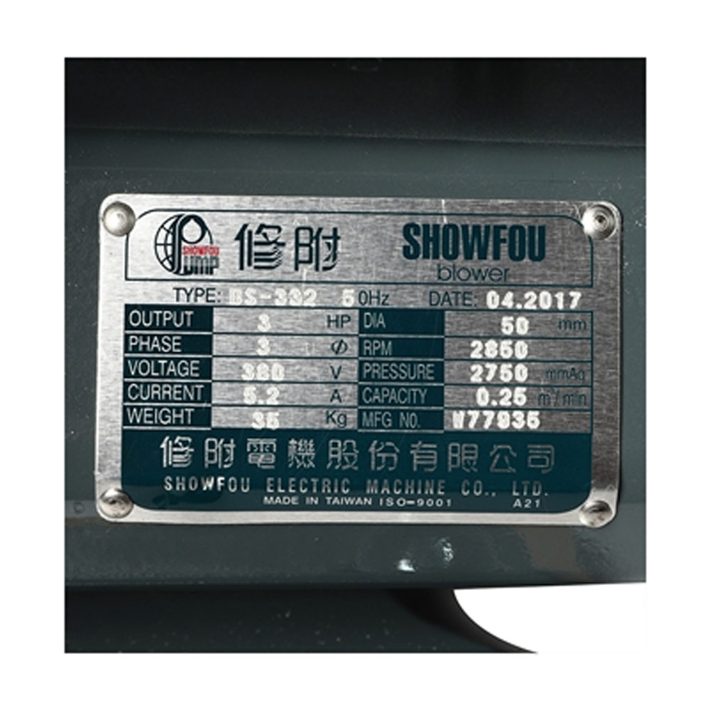 BS-332 มอเตอร์เป่าลม ริงโบล์เวอร์ 3HP, 380V ท่อส่ง 2″