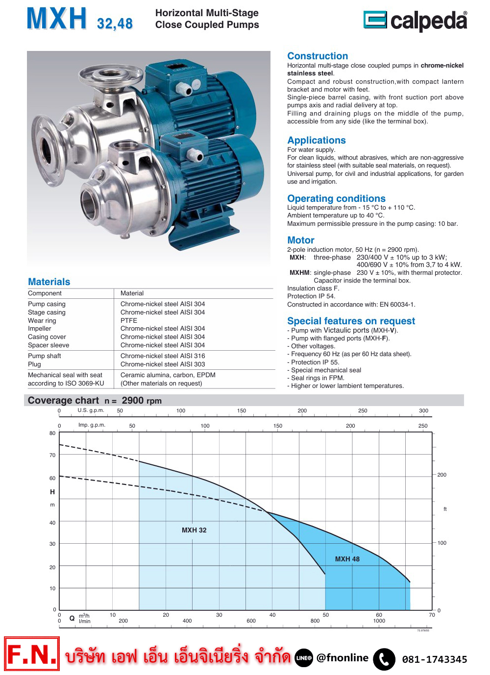 • Calpeda MXH 32, 48: ปั๊มสแตนเลสหลายใบพัดสำหรับงานหนัก