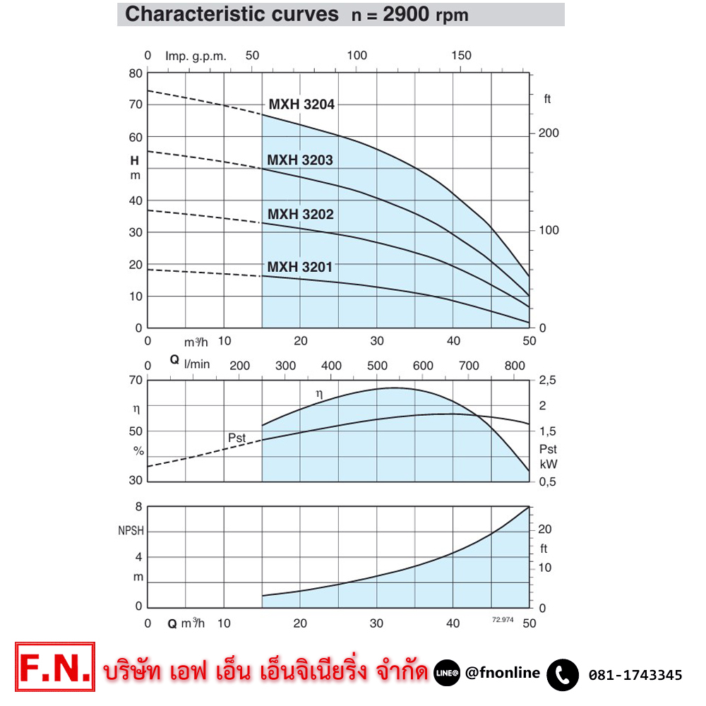 • ส่งน้ำได้สูง Head : 55.5-10 M.
