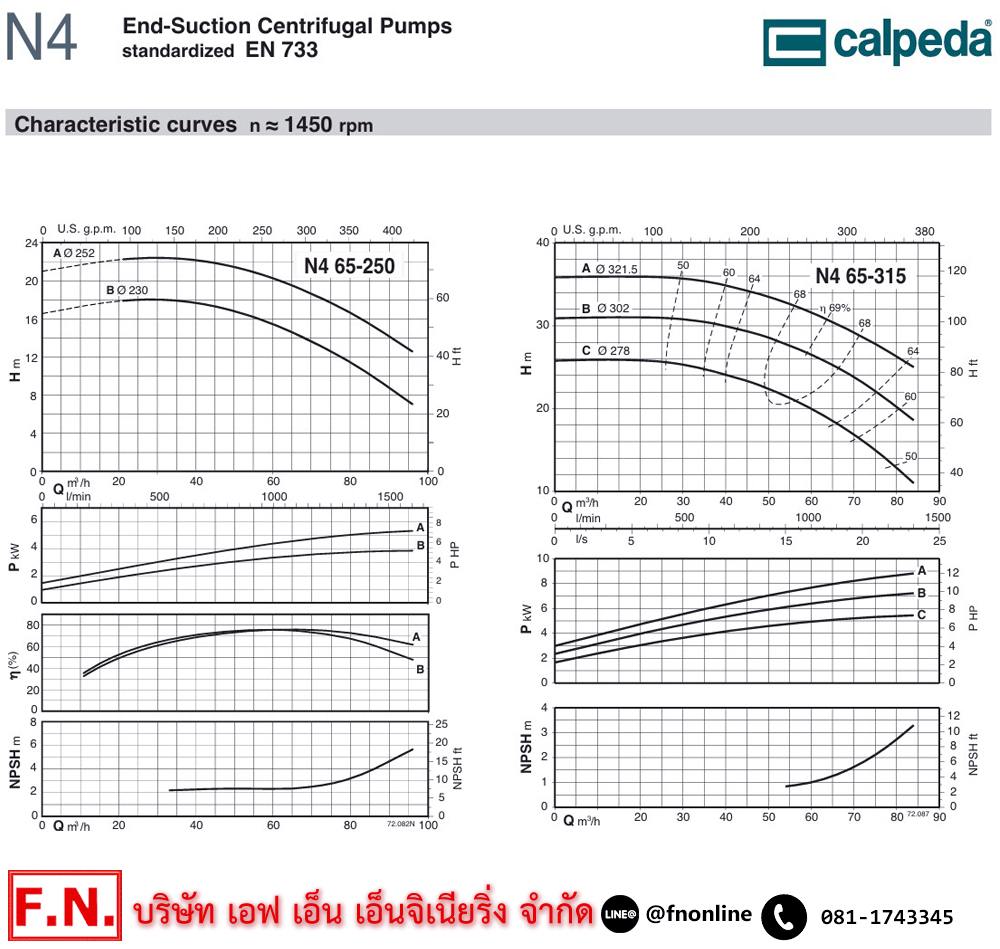 • CALPEDA N4-65-315C/A ปั๊มน้ำเพลาลอย ท่อ 80X65MM ไม่รวมหน้าแปลน