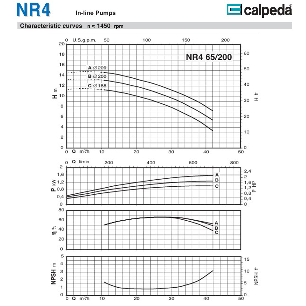 CALPEDA NR4 65/200A ปั๊มน้ำหอยโข่ง ใบพัดเดี่ยว 3HP 400V 1,450RPM ท่อ 65 มิล สำหรับงานหมุนเวียน
