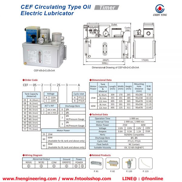 CEF-05 ปั้มจ่ายน้ำมันแบบหมุนเวียน 25W ท่อ Ø6 MM ระบบตั้งเวลา,ถัง4 ลิตร
