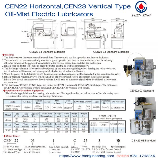 • CEN22-03 ปั้มจ่ายน้ำมันชนิดแนวนอน แบบพ่นละออง ระบบตั้งเวลา ถัง3 ลิตร