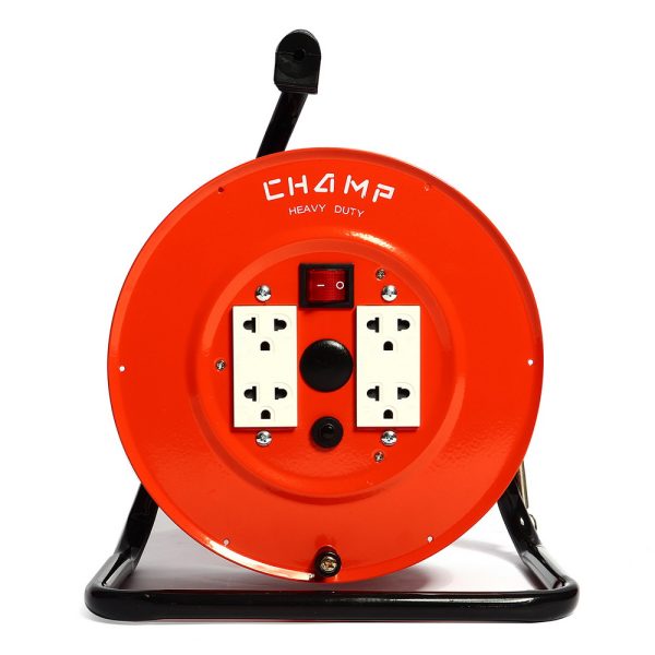 CHAMP (ล้อเปล่าไม่มีสายไฟ)ล้อเก็บสายไฟ มาตรฐาน มอก. รุ่น CHD41 Series รองรับไฟได้ 16 แอมป์ (3,500 วัตต์) เต้าเสียบ 4 ช่อง 1 สวิตช์ มีเบรกเกอร์ IEC 60934 ป้องกันกระแสไฟเกิน ทนทาน ไม่เป็นสนิม ใช้ได้ทั้งในอาคารและนอกอาคาร