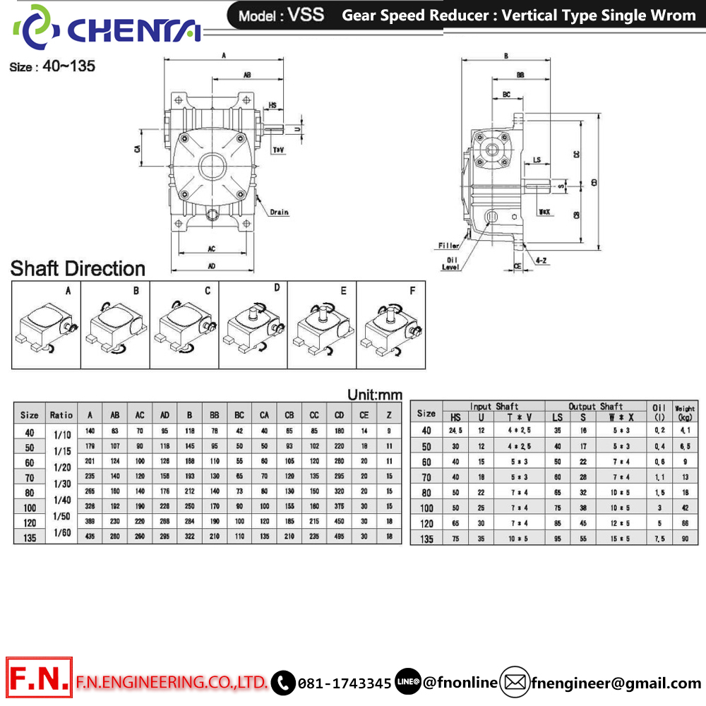 • Ratio อัตราทดรอบ : 1:10,1:20,1:30,1:40,1:50,1:60