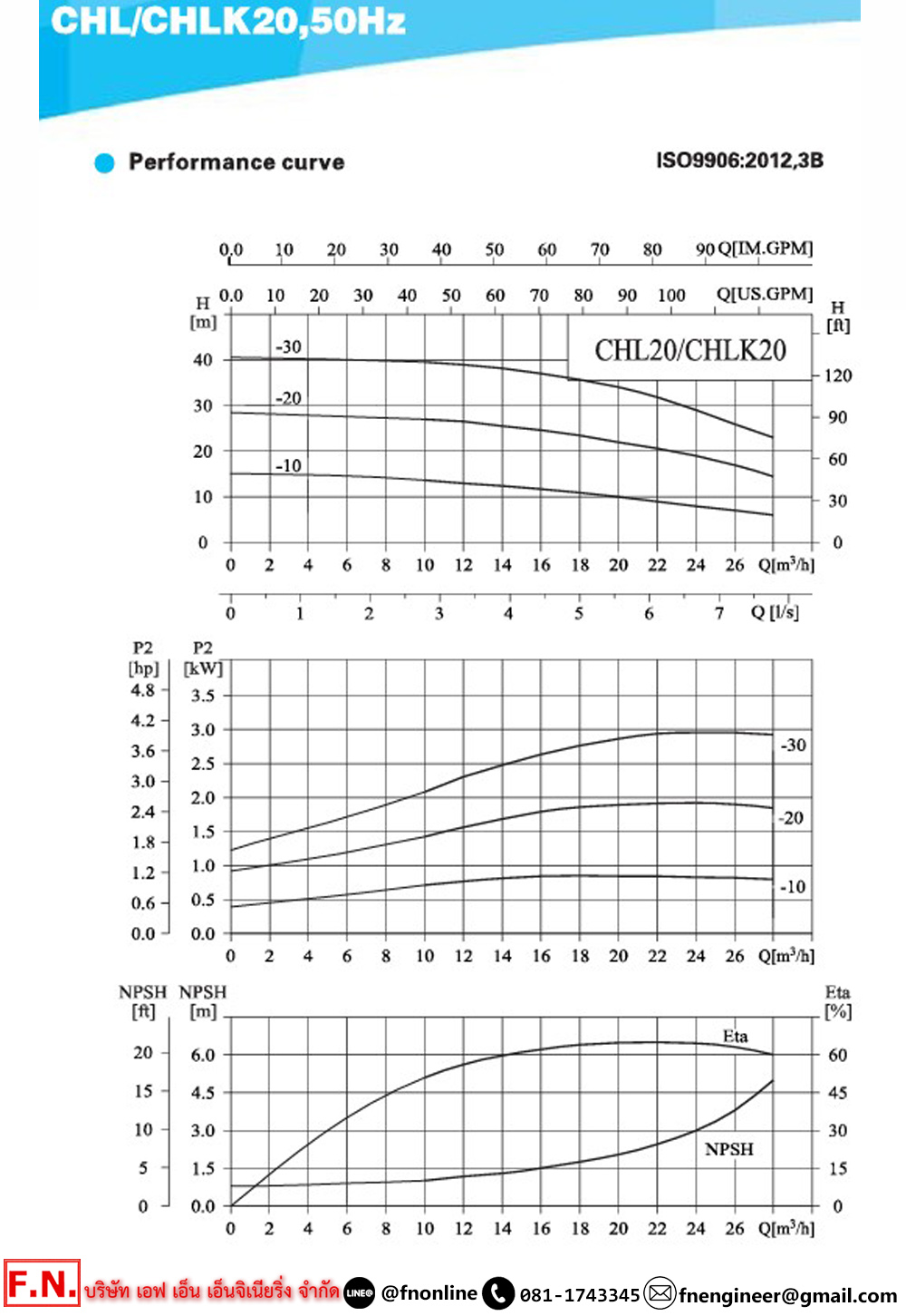 • CNP CHL20-20 ปั๊มน้ำหลายใบพัดแนวนอน 3HP 380V. ท่อส่ง 2″x 2″ ผลิตจากสแตนเลส AISI 304