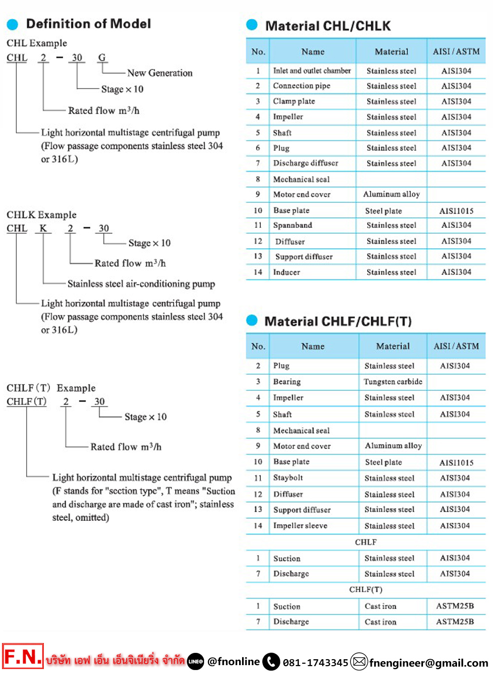 • ปั๊มน้ำหอยโข่งสแตนเลสแบบแนวนอนหลายใบพัด รุ่น CHL คุณภาพสูง พร้อมการรับประกัน 1 ปี